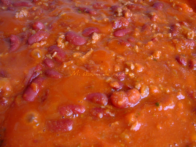 La receta la encontré por internet hace años, no la había vuelto a encontrar, y después de mucho buscar por fin os puedo poner la fuente http://www.borjanet.com/archives/2004/09/27/chili-con-carne. Desde que la probé, me encantó, así que os invito a hacerla, es muy sencilla.